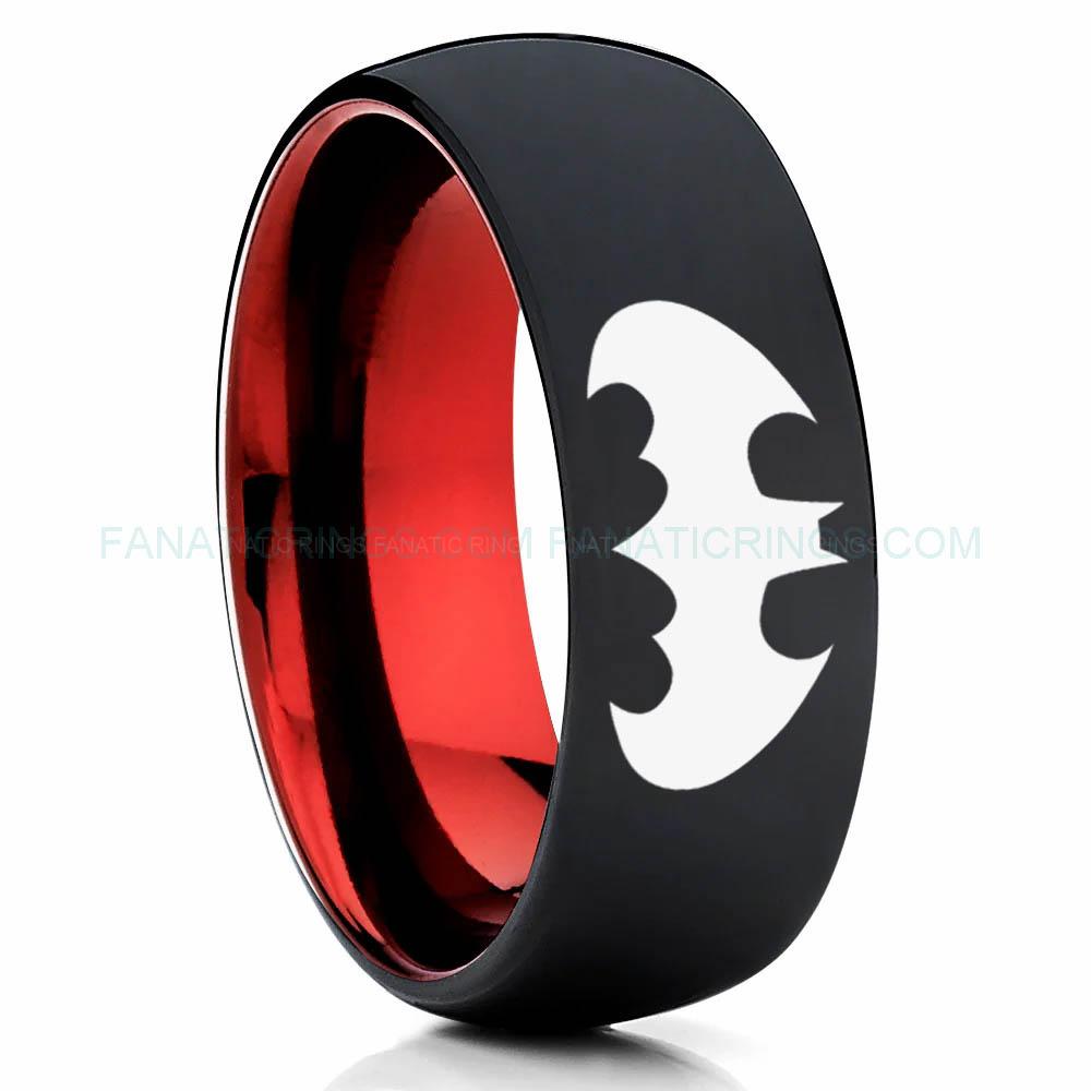 Batman Ring, Batman Wedding Band, Batman Wedding Ring, Black Wedding Band, Black Wedding Ring