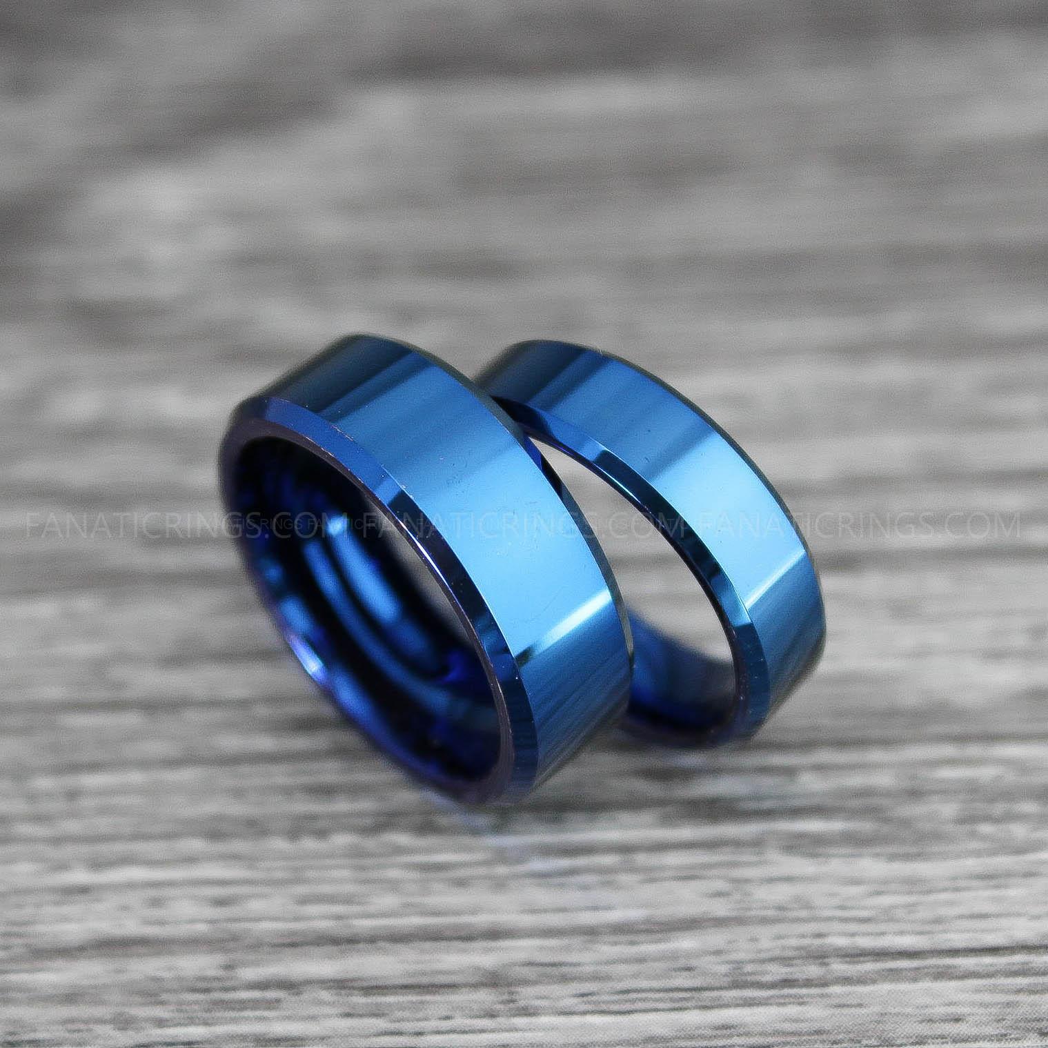 Blue Wedding Bands, Couple Rings, Blue Wedding Rings, Blue Tungsten Rings