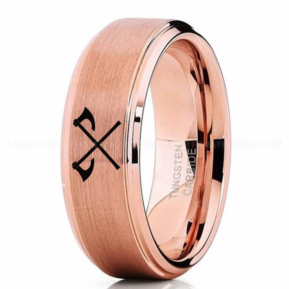 Til Valhalla Ring, Viking Ring, Runes Ring, Valknut Ring, Nordic Ring, Norsemen Ring, Nordic Runes Ring, Rose Gold Tungsten Band
