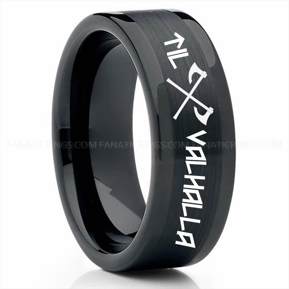 Til Valhalla Ring, Viking Ring, Runes Ring, Valknut Ring, Nordic Ring, Norsemen Ring, Nordic Runes Ring, Black Tungsten Band