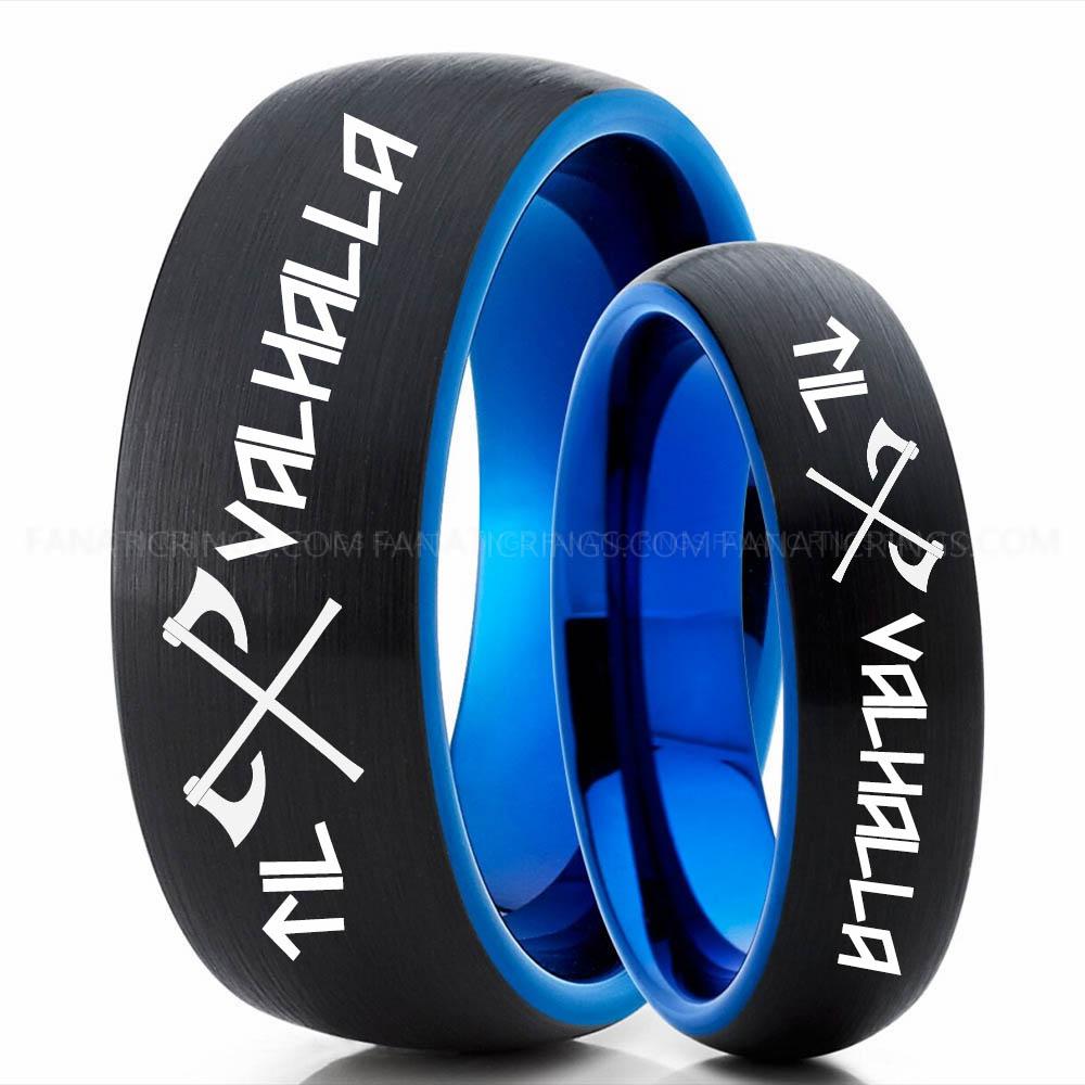Til Valhalla Rings, Viking Rings, Runes Rings, Valknut Rings, Nordic Rings, Norsemen Rings, Nordic Runes Rings, Black Tungsten Bands