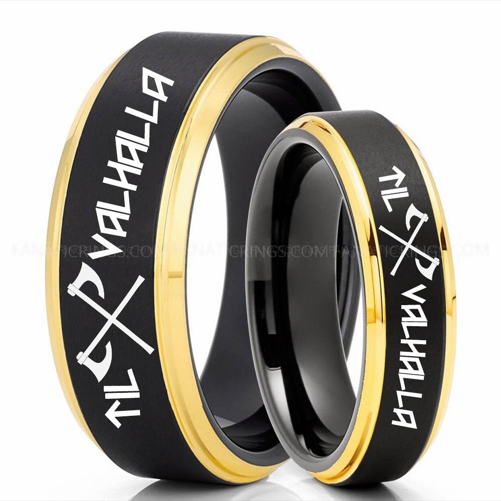 Til Valhalla Rings, Viking Rings, Runes Rings, Valknut Rings, Nordic Rings, Norsemen Rings, Nordic Runes Rings, Black Tungsten Bands